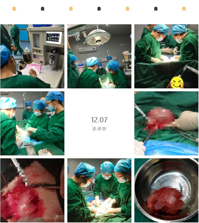 一切准备就绪,刘女士也平稳的睡着,这时手术台上的灯光亮起,一场新的战斗开始了。麻醉师默默地在仪器旁边一边观察、监视着刘女士的生命体征一边认真的记录数据,主刀医生张玉英院长快速找准位置,一刀下去,经两位助手与一名器械护士的协助与配合,肿瘤渐显,慢慢的已经全部显露出来。肿瘤剥除是需精细且全神贯注的一道工序,手术当中只听到医生嘴里说着“刀、剪刀、镊子......”。时间一分一秒的过去,经历短暂而又漫长的一个小时,手术终于结束了,医生的眉头也逐渐舒展,迈着稳健的步伐走下了手术台。